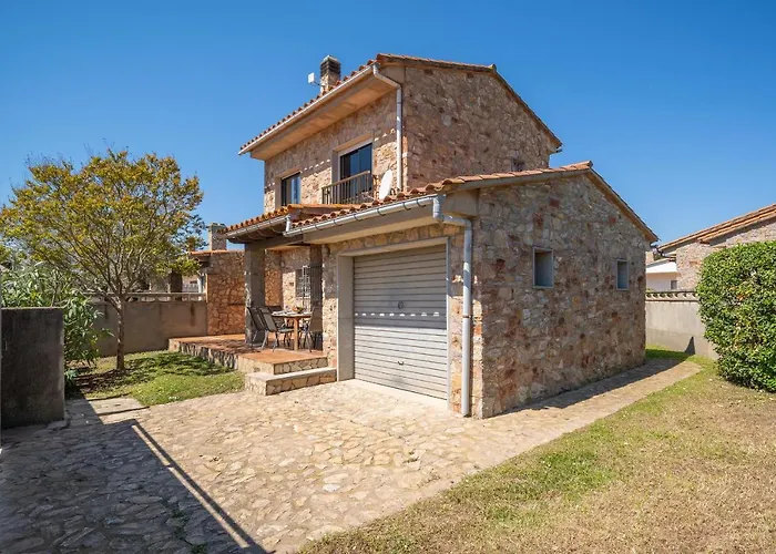 De 2-slaapkamer Villa Paulina Sant Marti d'Empuries ligt op sechts 19 minuten wandelafstand van het Playa El Rec del Moli en nodigt gasten uit om te genieten van een terras.